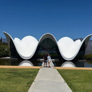 O cenário não poderia ser outro: a Capela Bosjes. Um espaço em meio à natureza, com sua arquitetura de curvas brancas que parecem tocar o céu, cercada por montanhas e silêncio. Ele já conhecia aquele lugar, guardava-o como um tesouro, e sempre dizia que sonhava em me levar, junto com o Vincenzo, para sentir sua beleza e paz.